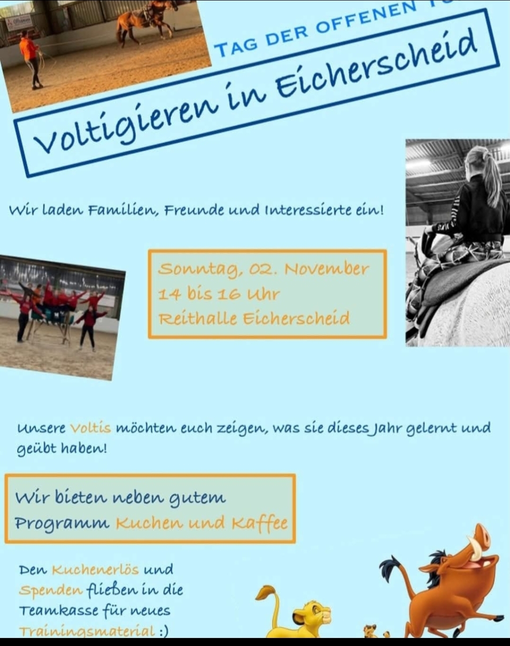 Infos zum Voltigierunterricht Fam. Käfer 02473-7963, Claudia Käfer 01573 5737936